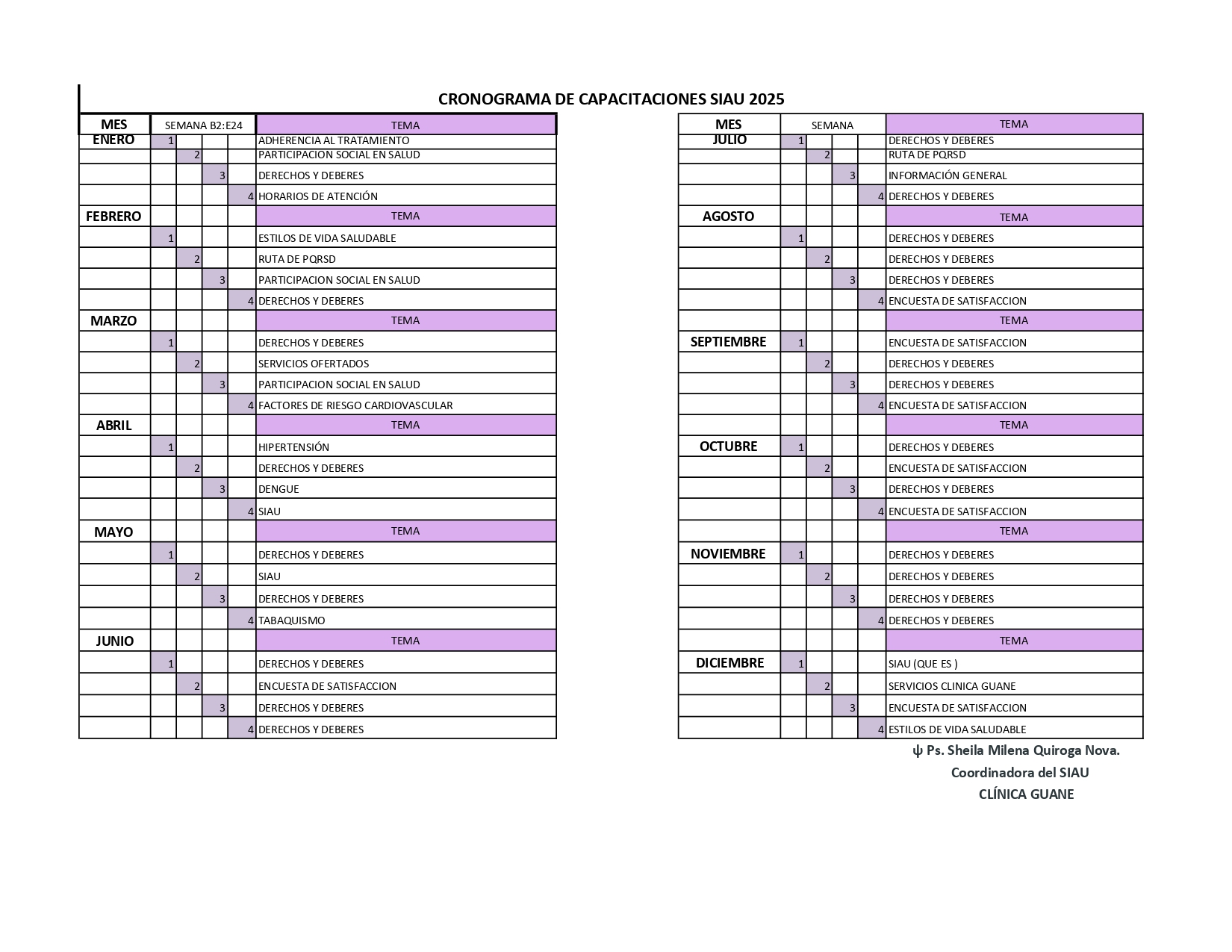 imagen 6: cronograma de actividades y capacitaciones SIAU.